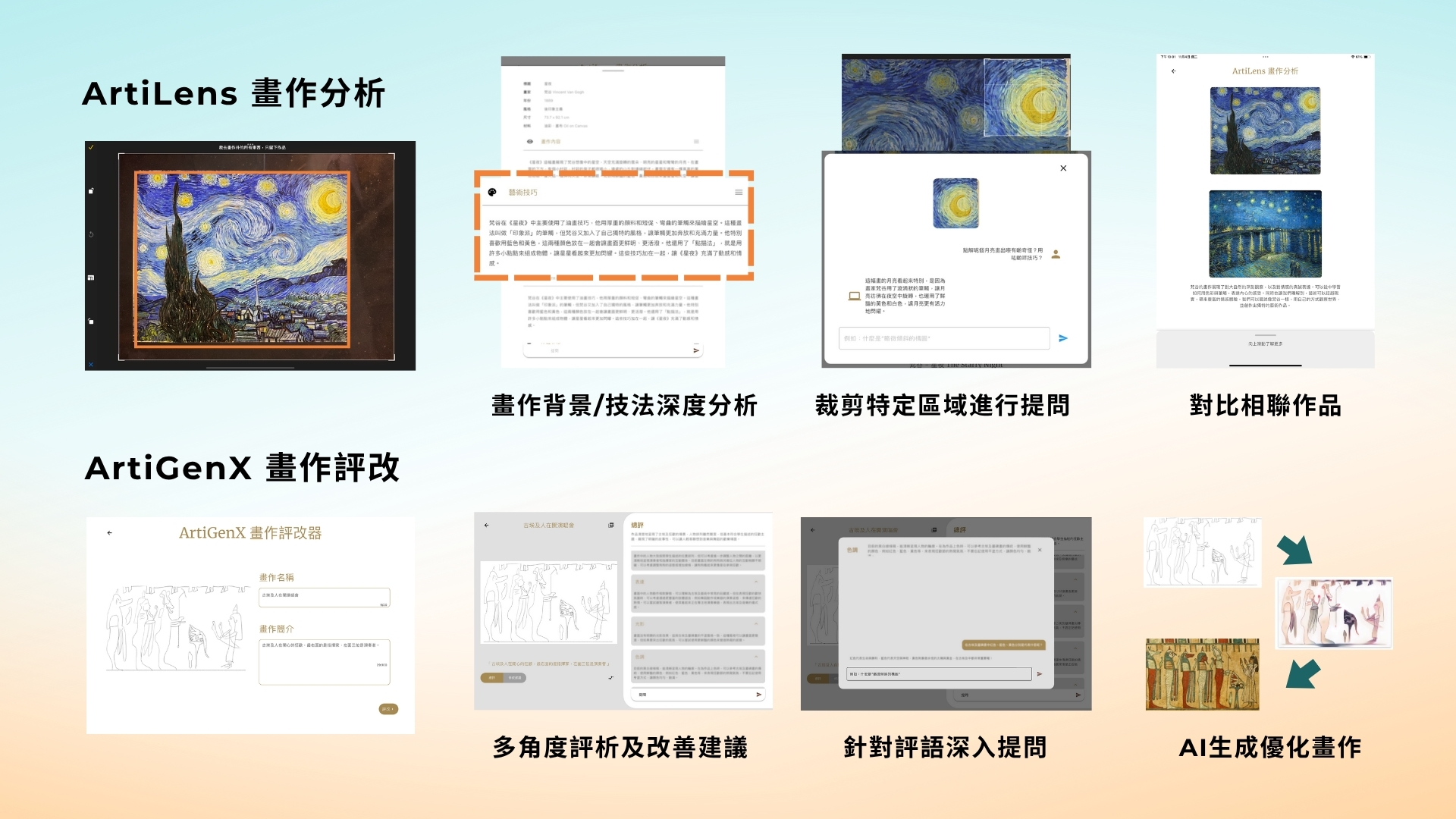 ArtiLens Artwork Analyser utilizes a self-developed vision-language model to enable students to explore an artwork’s historical context, techniques, and cultural references simply by taking a photo. With our chatbot users can delve deep into every artwork and interact as if talking to the real artist.